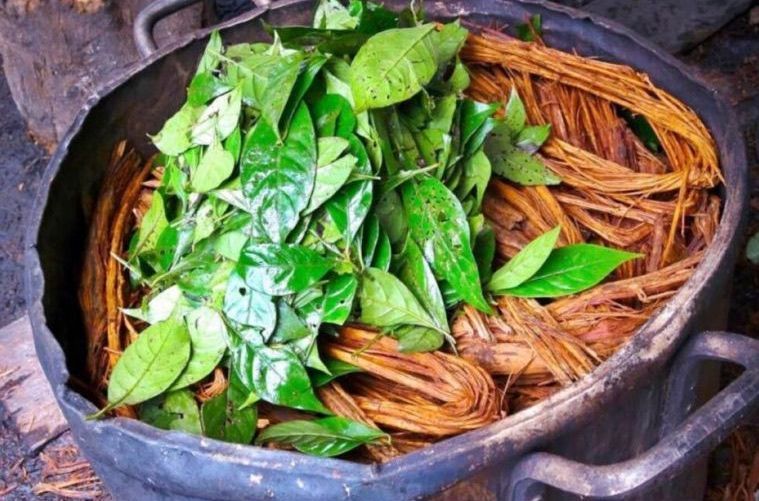 Deze heilige thee wordt gemaakt uit twee planten. Op traditionele wijze worden de Banisteriopsis caapi liaan en de bladeren van de Chacruna gebruikt om de drank te maken.